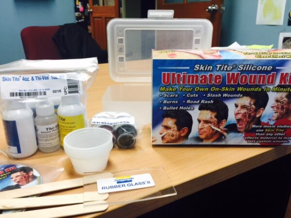The Ultimate Wound Kit™ includes everything you need to create highly realistic wounds directly on the skin in minutes using Skin Tite® silicone! More movie studios use Skin Tite® than any other effects material to make fast custom wounds. Ideal for moulage and casualty simulation on actors, standardized patients and mannequins. Also suitable for theatrical and movie make-up applications, and Halloween special effects. This kit contains all the supplies needed to make simulated trauma scars, open wounds, burns, cuts, infections, and more.